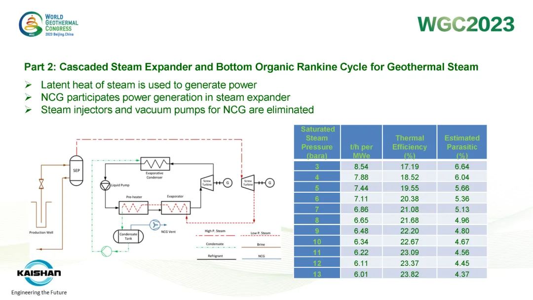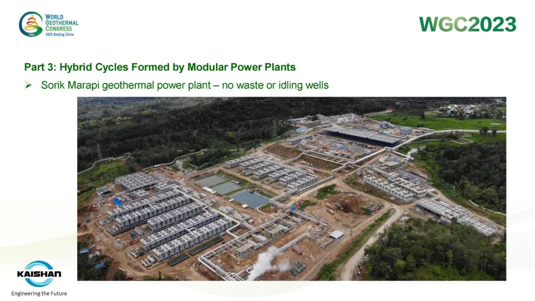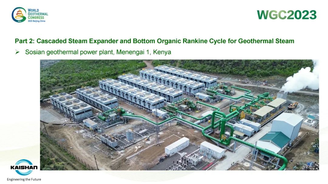 湯炎博士著重介紹了由開山EPC建設的肯尼亞Sosian-Menengai地熱電站及開山自主開發、建設、運營的Sorik Marapi地熱電站成功案例。Sosian-Menengai地熱電站采用“蒸汽膨脹機+濕蒸汽ORC膨脹機”模塊電站串級循環,無需采用傳統中央電站分離不凝性氣體的蒸汽噴射器和真空泵,從而降低了電站寄生負荷、提高其發電效率。Sorik Marapi項目是公司各類型模塊電站的集大成者,高壓蒸汽井、低壓蒸汽井、熱水井熱源均可得到充分利用,進而使項目實現“無閑置低壓/低溫井”。模塊電站“量體裁衣”shidejiejuefangantongguotigaojingrexiaolvgaishanledirekaifadejingjixing,yetongguodushuyizhidiyouxiaoliyongdiyadirejingjireshuijing,xianzhujiangdileziyuanzuantandedanweichengben。