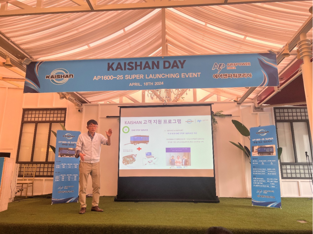 4月18日,韓國代理商夥伴AIR&POWER公司在韓國京畿道龍仁市舉辦“開山日”活動,曹克堅董事長攜開山集團市場部總經理李蘅、質量總監施勇、亞太銷售公司總裁葉宗浩、銷售總監於紹文以及工程設計人員參加了活動。舉辦這次活動旨在進一步開拓韓國壓縮機市場,布局韓國工程機械市場。