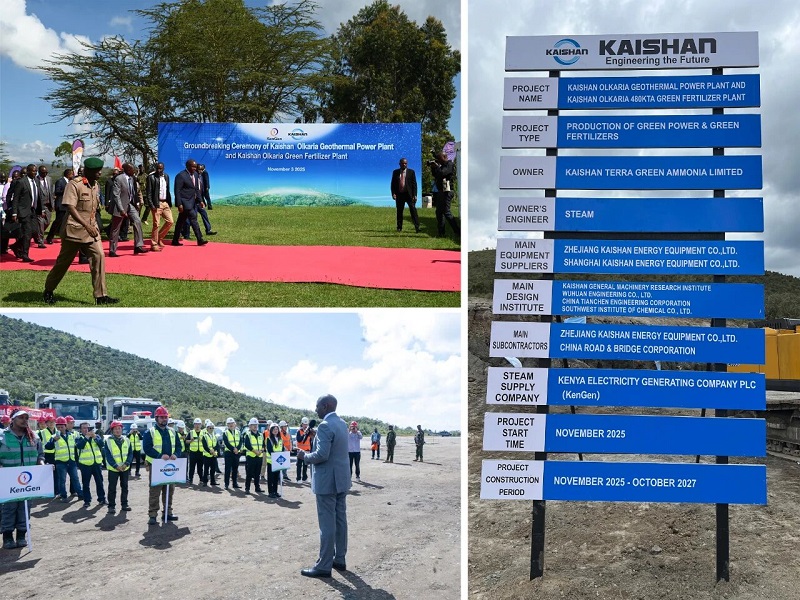 湯炎博士也在儀式上講話。他強調指出:我們已經為肯尼亞綠色工業化完成了兩個地熱電廠,開山Olkaria 地(di)熱(re)電(dian)廠(chang)和(he)綠(lv)色(se)化(hua)肥(fei)廠(chang)是(shi)開(kai)山(shan)在(zai)肯(ken)尼(ni)亞(ya)的(de)下(xia)一(yi)個(ge)裏(li)程(cheng)碑(bei),是(shi)開(kai)山(shan)在(zai)清(qing)潔(jie)能(neng)源(yuan)發(fa)展(zhan)征(zheng)程(cheng)上(shang)又(you)一(yi)個(ge)新(xin)的(de)篇(pian)章(zhang)。我(wo)們(men)要(yao)使(shi)用(yong)肯(ken)尼(ni)亞(ya)能(neng)源(yuan)公(gong)司(si)的(de)地(di)熱(re)蒸(zheng)汽(qi)生(sheng)產(chan)165 MW清潔電能,並用這一清潔電能製氫、生產綠氨,最終生產出超過48萬噸的綠色化肥。特別需要特別指出的是,開山Olkaria 地熱電廠是世界上第一座零排放的地熱電廠。地熱蒸汽中的不凝性氣體將被完全回收生產CO2,並bing送song往wang綠lv色se化hua肥fei廠chang作zuo為wei生sheng產chan尿niao素su的de原yuan料liao。我wo們men在zai創chuang造zao曆li史shi,零ling排pai放fang地di熱re發fa電dian廠chang的de曆li史shi,綠lv色se化hua肥fei生sheng產chan的de曆li史shi,非fei洲zhou綠lv色se工gong業ye化hua的de曆li史shi,並bing將jiang激ji勵li全quan球qiu綠lv色se能neng源yuan和he綠lv色se工gong業ye化hua的de發fa展zhan。