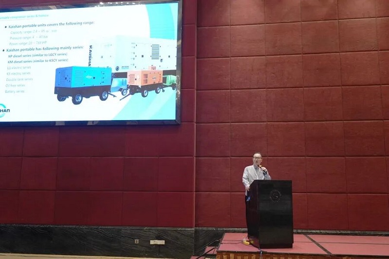 除此之外,公司各技術團隊負責人和業務板塊負責人在大會和各專場會議向與會經銷商全麵介紹了涵蓋多領域的新產品、新技術和新方案,包括智能鑿岩機器人、各類大型鑽鑿設備及全係列智慧礦山開采設備、移動、電動固定幹式無油螺杆空壓機、水潤滑無油單螺杆空壓機、超高能效兩級壓縮螺杆空壓機、電池驅動移動式螺杆空壓機、工程移動式螺杆空壓機、i-Kaishan 物聯網壓縮空氣係統集成方案、集裝箱式空壓站、離心式空壓機、40barg中壓組合機、工藝氣體壓縮機、磁懸浮係列鼓風機/真空泵/空壓機係列產品、激光切割機用製氮設備產品、淨化設備、VPSA製氧係統、製氮係統、熱泵與水蒸氣壓縮機、高壓往複壓縮機、壓力容器設備、環境工程係列產品以及高能效、低成本螺杆空壓機係列。
