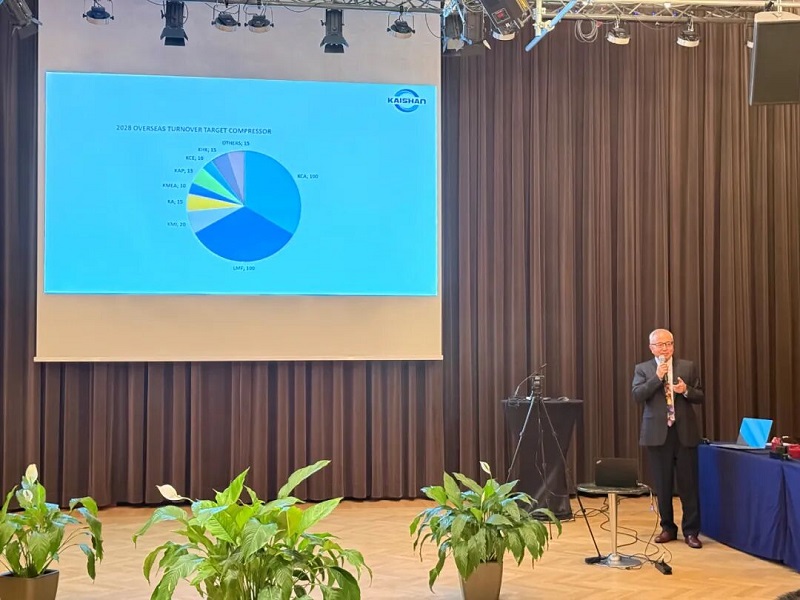 曹克堅董事長在開場講話中向與會者介紹了開山在2025年nian取qu得de的de各ge項xiang成cheng就jiu,特te別bie是shi開kai工gong建jian設she肯ken尼ni亞ya綠lv氨an項xiang目mu這zhe一yi裏li程cheng碑bei事shi件jian,著zhe重zhong講jiang解jie了le開kai山shan戰zhan略lve,並bing將jiang未wei來lai三san年nian的de戰zhan略lve任ren務wu細xi化hua分fen解jie給gei各ge個ge公gong司si。他ta對duiLMF(奧地利)、KCA(北美)、KMI(印度)、KA(澳大利亞)等業績出色的公司給予了表揚,對於2025年新創立公司,以及個別經營業績不佳、更geng換huan了le經jing營ying團tuan隊dui的de公gong司si給gei予yu了le鼓gu勵li。曹cao董dong強qiang調tiao,海hai外wai團tuan隊dui肩jian負fu著zhe幫bang助zhu開kai山shan成cheng長chang為wei跨kua國guo公gong司si的de重zhong要yao使shi命ming,要yao通tong過guo紮zha實shi經jing營ying和he持chi續xu努nu力li,確que保bao營ying業ye收shou入ru與yu利li潤run的de穩wen定ding持chi續xu增zeng長chang,實shi現xian開kai山shan品pin牌pai成cheng為wei全quan球qiu壓ya縮suo機ji主zhu要yao品pin牌pai這zhe一yi戰zhan略lve目mu標biao。